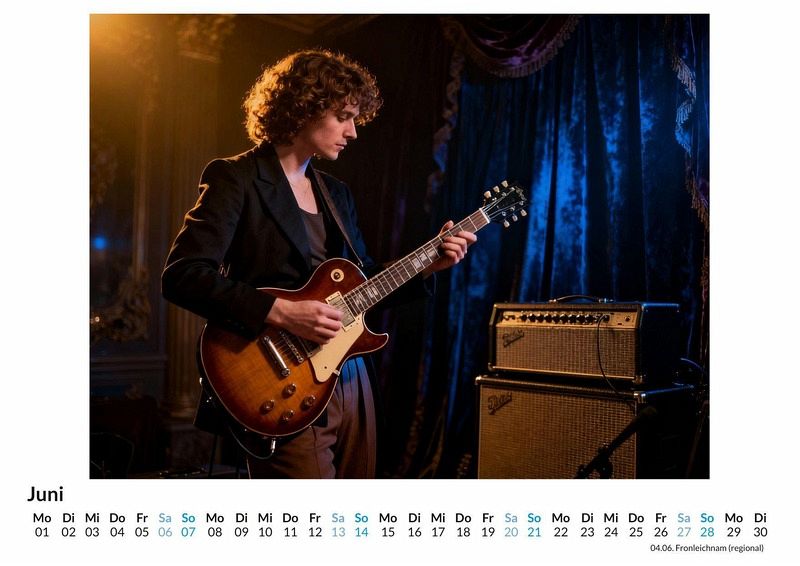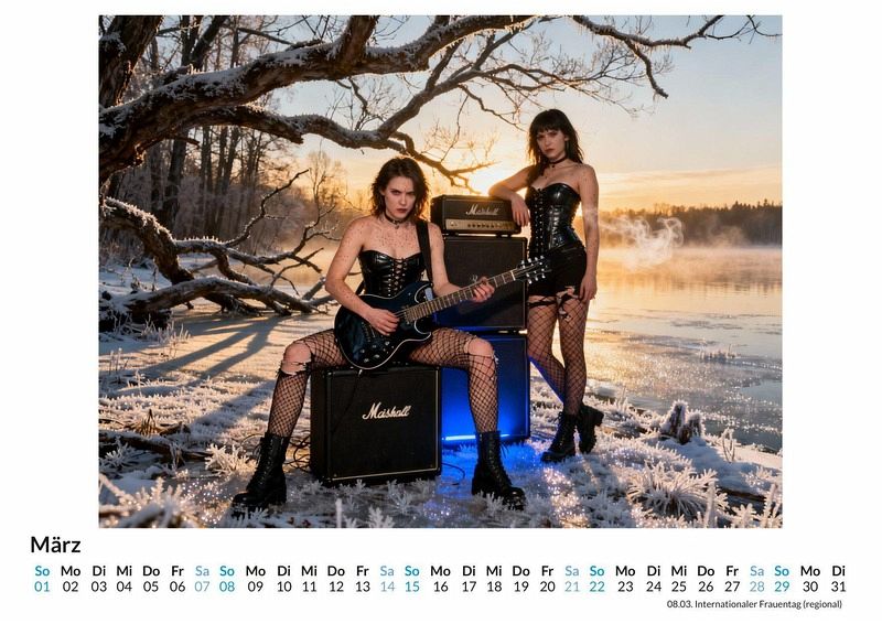 Die rohe Energie des Rock 'n' Roll trifft auf eine fesselnde Ästhetik. Der Kalender "Talentierte Musikerinnen" präsentiert eine Komposition aus Musik und visueller Kraft, die das ganze Jahr über begleitet. Er bricht mit Konventionen und feiert eine starke, ungezähmte Weiblichkeit im Scheinwerferlicht der Bühne. Dieser Kalender ist eine passende Wahl: * Für Liebhaber von Rockmusik und dem Klang von E-Gitarren. * Für Freunde einer Ästhetik, die Selbstbewusstsein und Rebellion vereint. * Für Sammler von Wandkalendern mit einem unverwechselbaren Thema. Jeder Monat enthüllt eine neue Szene. Eine Musikerin, gekleidet in eine Leder-Corsage und Netzstrumpfhose, nimmt mit ihrer E-Gitarre auf einem Verstärker Platz. Die Bilder fangen eine Stimmung ein, die zwischen musikalischer Leidenschaft und kühler Pose schwankt. Jedes Motiv wurde durch Algorithmen und kreative Eingaben zum Leben erweckt und stellt eine eigenständige Interpretation des Themas dar. Der Kauf dieses Kalenders verspricht: * Zwölf Monatsmotive, die das Thema konsequent umsetzen. * Ein übersichtliches Kalendarium für die Terminplanung. * Eine Sammlung von Bildern, die Musik und eine markante Optik verbinden. Dieser Kalender ist mehr als ein Zeitplaner; er ist ein Statement an der Wand, das die Verbindung von Klang und Erscheinung zelebriert. Ein Blick auf die Vorschau enthüllt die zwölf Kompositionen und die visuelle Energie, die durch das Jahr begleitet.
