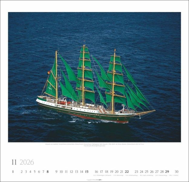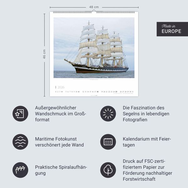 - Leinen los! Jahres-Wandkalender mit 12 beeindruckenden Motiven majestätischer Segelschiffe - inklusive detaillierter Bildunterschriften- Eintauchen in die faszinierende Welt der Windjammer: XL-Wandkalender für Kenner und Liebhaber:innen von merhmastigen Groß-Segelyachten- Wenn Wind und Meer schon fast zu spüren sind: genussvoll in Segel-Stimmung kommen- Dekorativer Monatskalender mit farbenfrohen Aufnahmen in Spitzenqualität - ein Blickfang an jeder Wand im Großformat 48 x46 cm- Brillante Bilder und große Themenvielfalt: die Fotokalender von Weingarten im Athesia Kalenderverlag
