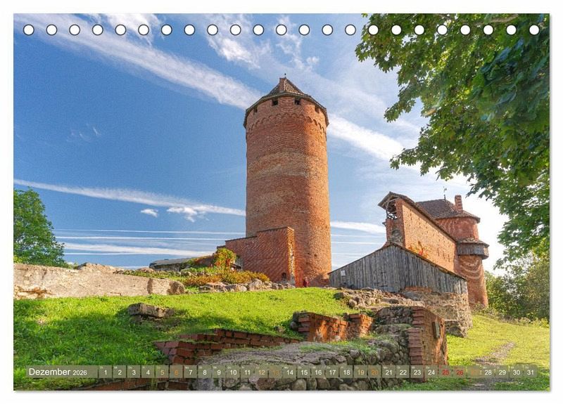 Januar: Burgruine und Renaissanceschloss in der lettischen Stadt Bauska. Der Bau wurde von 1443 bis 1456 begonnen.