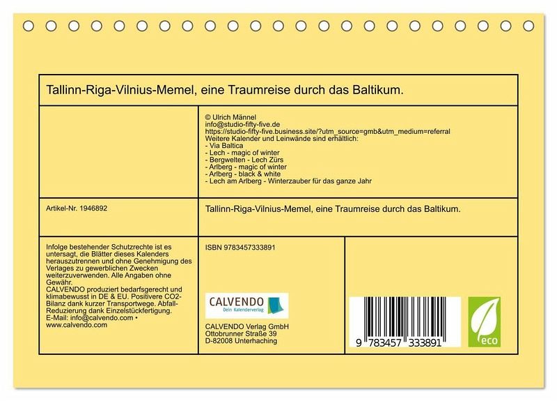 QUALITÄT - Hochwertiger Fotokalender mit 12 wunderschönen Motiven auf lichtbeständigem Bilderdruckpapier, robuste Spiralbindung.NACHHALTIG - deutliche Abfallreduzierung durch bedarfsgerechte Einzelstückfertigung, umweltfreundliches FSC-zertifiziertes Papier, Produktion in Deutschland, klimabewusste Logistik.PERFEKTES GESCHENK - Kalender für Freunde und Familie, für Kinder und Erwachsene, jung und alt, zu Weihnachten, Geburtstag oder zwischendurch.VIELFALT - Bildkalender in verschiedenen Formaten, z.B. DIN A5, DIN A4, DIN A3 sowie DIN A2. Ob Naturmotiv, Gemälde oder Fotos, ideal für ein persönliches Wohlfühlambiente.Baltikum, ist eine einzigartige, wunderschöne, alte und durch Geschichte geprägte Landschaft mit den Ländern Estland, Lettland und Litauen. von Autor(in): studio-fifty-five