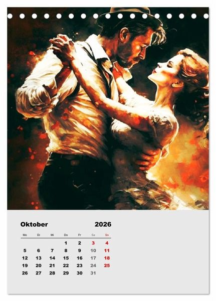 Der Tango Argentino ist für viele Menschen der Inbegriff für Stolz, Stil, Leidenschaft und Anmut, aber auch für Sinnlichkeit und Verführung. Diese Bilder wurden mit KI erstellt und zeigen elegante und temperamentvolle Tango-Paare, denen es nicht an Ausstrahlung mangelt. Ein toller Kalender, der das ganze Jahr belebt und zum Tanzen einlädt.