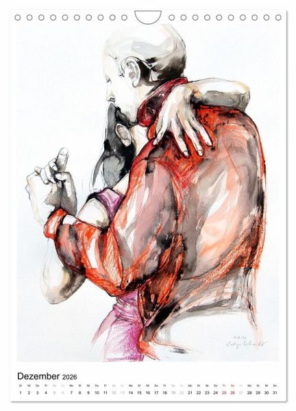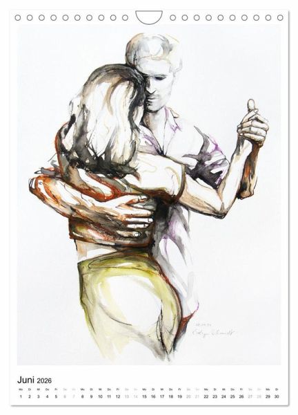 Tango Argentino ist ... getanzte Leidenschaft, ein nonverbaler Dialog, Hingabe, und noch vieles mehr. Was diesem außergewöhnlichen Tanz einen ganz besonderen Zauber verleiht ist die innige Umarmung. Diese magische Verbindung ausdrucksstark darzustellen, war für mich das Ziel bei der Erschaffung der Zeichnungen und Gemälde in diesem Kalender.