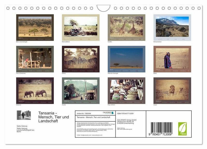 QUALITÄT - Hochwertiger Fotokalender mit 12 wunderschönen Motiven auf lichtbeständigem Bilderdruckpapier, robuste Spiralbindung mit Aufhängebügel.NACHHALTIG - deutliche Abfallreduzierung durch bedarfsgerechte Einzelstückfertigung, umweltfreundliches FSC-zertifiziertes Papier, Produktion in Deutschland, klimabewusste Logistik.PERFEKTES GESCHENK - Kalender für Freunde und Familie, für Kinder und Erwachsene, jung und alt, zu Weihnachten, Geburtstag oder zwischendurch.VIELFALT - Bildkalender in verschiedenen Formaten, z.B. DIN A5, DIN A4, DIN A3 sowie DIN A2. Ob Naturmotiv, Gemälde oder Fotos, ideal für ein persönliches Wohlfühlambiente.Ein Einblick in die Schönheit Tansanias von Autor(in): Salke Hartung