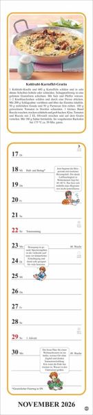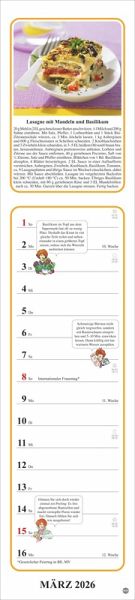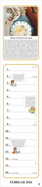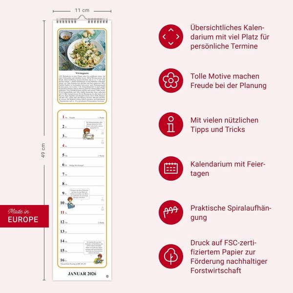 - Nostalgischer Wandkalender für die Küche, randvoll mit Haushaltstipps, Kochrezepten und viel Platz für Notizen - Findet auch in kleinen Küchen ein Plätzchen: Streifenkalender im Format 11 x 49 cm mit Halbmonatskalendarium - Der Langplaner mit viel Inspiration rund ums Kochen: Tante Clara lässt in diesem Wand-Terminplaner 2026 tief in ihre Kochtöpfe blicken- Praktisch und dekorativ: liebevoll illustrierter Küchenkalender mit Rezepten zum Heraustrennen und Sammeln und Platz für Termine- Kalender für jeden Raum: Bei Heye im Athesia Kalenderverlag finden Sie eine große Auswahl!