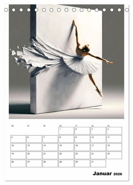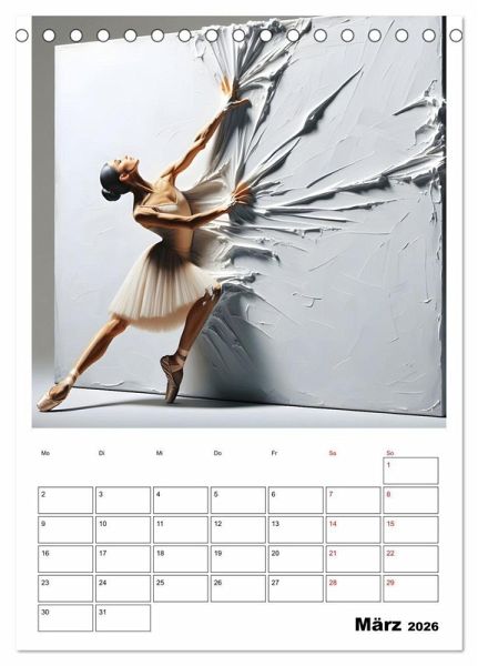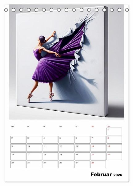 Tauchen Sie ein in die faszinierende Welt einer gemalten Ballerina, die in einer atemberaubenden Serie von Bildern versucht, aus ihrer Leinwand zu entkommen. Jede Seite dieses einzigartigen Kalenders erzählt eine Geschichte von Anmut, Entschlossenheit und Freiheit, meisterhaft kreiert durch die präzise Hand der Künstlichen Intelligenz. Perfekt für Kunstliebhaber und Träumer, die die Schönheit des Unerwarteten schätzen.
