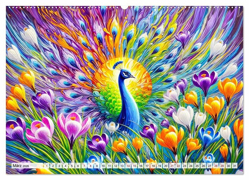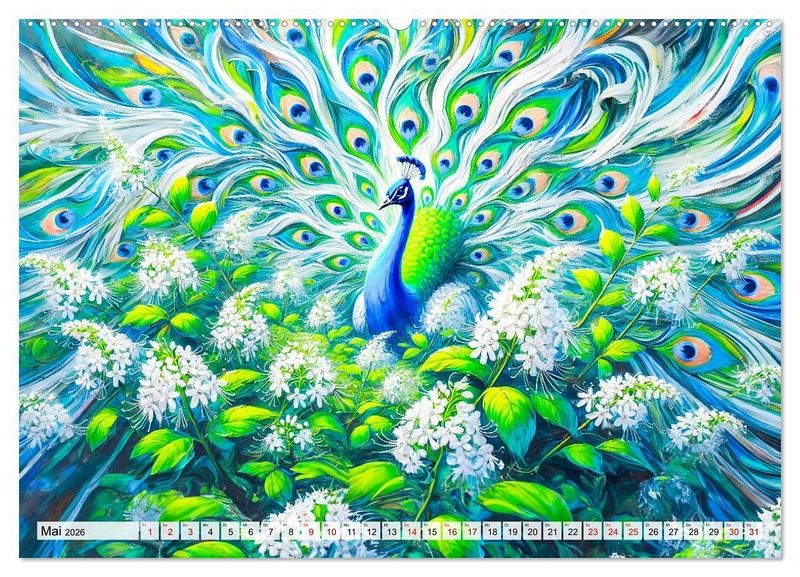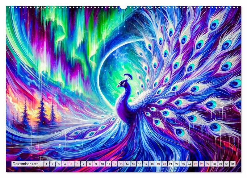 Erleben Sie mit "Tanz der Pfauen - Jahreszeiten in abstrakter Eleganz" die faszinierende Schönheit der Pfauen in einer einzigartigen künstlerischen Darstellung. Dieser Kalender begleitet Sie durch das Jahr und zeigt in jedem Monat atemberaubende, abstrakte KI-generierten Pfauenbilder, die die Farben und Stimmungen der Jahreszeiten einfangen. Von den kühlen Tönen des Winters bis zu den lebendigen Farben des Frühlings und Sommers - jede Seite ist ein Kunstwerk für sich.