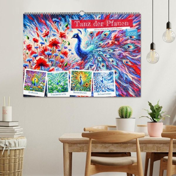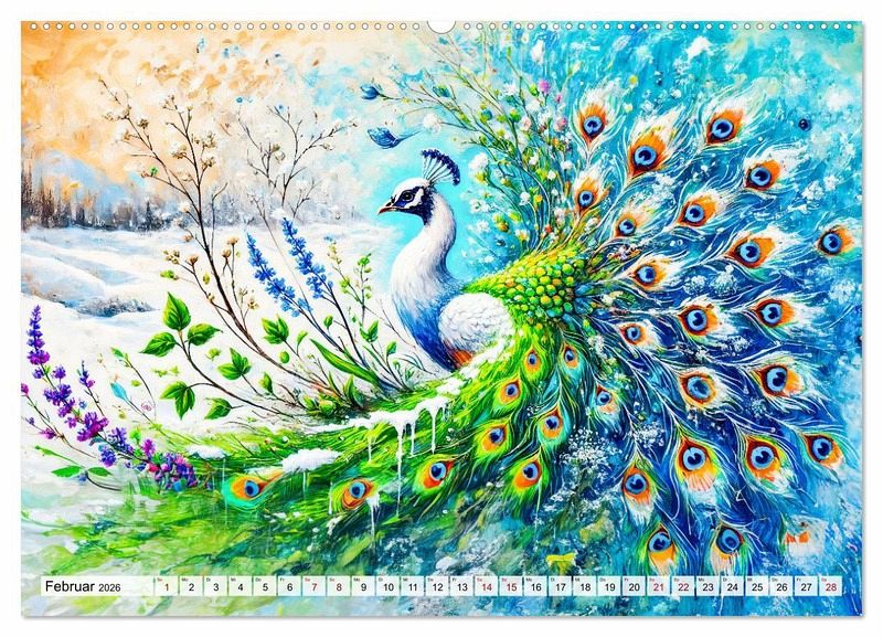 QUALITÄT - Hochwertiger Fotokalender mit 12 wunderschönen Motiven auf lichtbeständigem Bilderdruckpapier, robuste Spiralbindung mit Aufhängebügel.NACHHALTIG - deutliche Abfallreduzierung durch bedarfsgerechte Einzelstückfertigung, umweltfreundliches FSC-zertifiziertes Papier, Produktion in Deutschland, klimabewusste Logistik.PERFEKTES GESCHENK - Kalender für Freunde und Familie, für Kinder und Erwachsene, jung und alt, zu Weihnachten, Geburtstag oder zwischendurch.VIELFALT - Bildkalender in verschiedenen Formaten, z.B. DIN A5, DIN A4, DIN A3 sowie DIN A2. Ob Naturmotiv, Gemälde oder Fotos, ideal für ein persönliches Wohlfühlambiente.Faszinierende Pfauen in kunstvoller Darstellung, inspiriert von den Farben und Stimmungen der Jahreszeiten von Autor(in): Anja Frost
