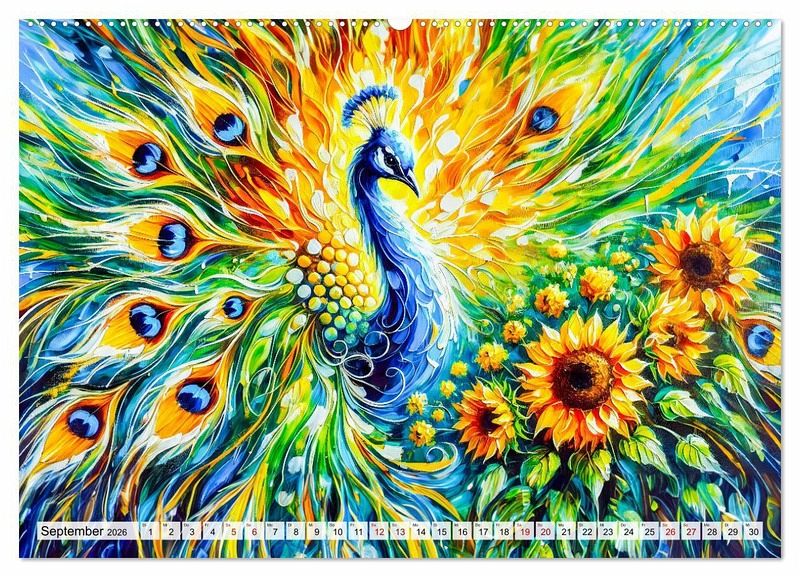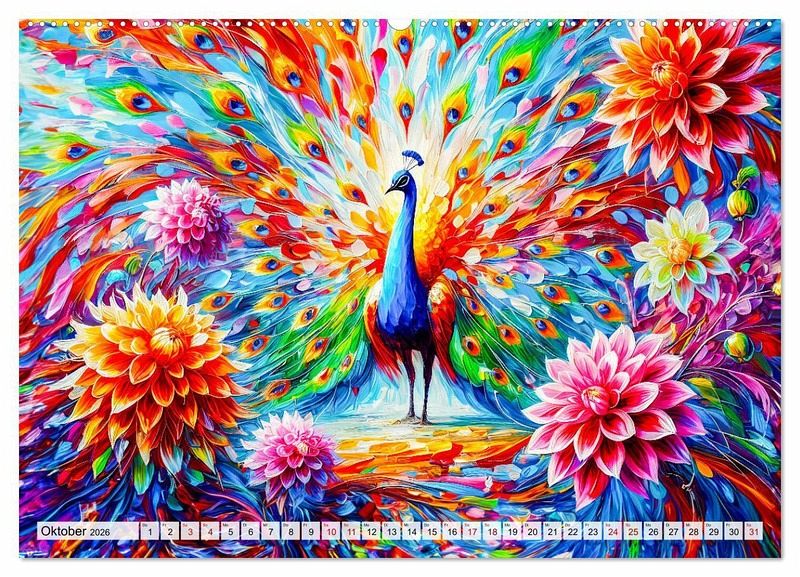 Erleben Sie mit "Tanz der Pfauen - Jahreszeiten in abstrakter Eleganz" die faszinierende Schönheit der Pfauen in einer einzigartigen künstlerischen Darstellung. Dieser Kalender begleitet Sie durch das Jahr und zeigt in jedem Monat atemberaubende, abstrakte KI-generierten Pfauenbilder, die die Farben und Stimmungen der Jahreszeiten einfangen. Von den kühlen Tönen des Winters bis zu den lebendigen Farben des Frühlings und Sommers - jede Seite ist ein Kunstwerk für sich.