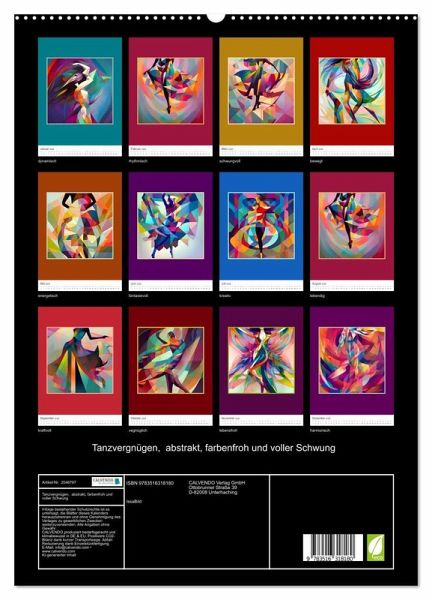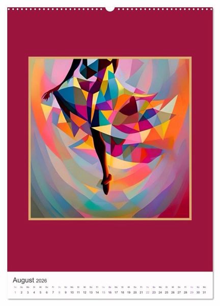 Bringen Sie Farbe und Bewegung in Ihr Zuhause oder Büro. Dieser kunstvolle und abstrakte Kalender ist voller Schwung und zeigt die Schönheit und Vielfalt des Tanzes in all seinen Formen. Jeder Monat ist eine Einladung, sich von der Energie und Leidenschaft des Tanzes mitreißen und inspirieren zu lassen und präsentiert ein einzigartiges Kunstwerk aus abstrakten Formen und dynamischen Mustern. Die Bilder sind KI-generiert.