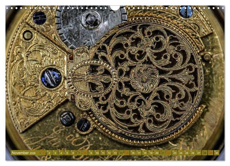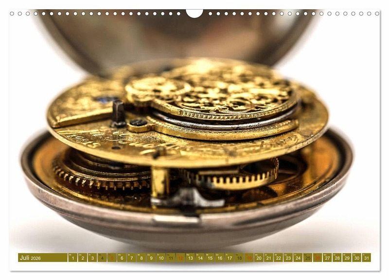 Ein Hauch von Luxus und Faszination spürt man inmitten dieser Vielfalt herrlicher Taschenuhren. Der Kalender zeigt verschiedene Gehäuse-Bauformen, Uhrenschlüssel, Damen- und Herrenuhren und zeigt auch die filigrane Technik, die sich im Innern dieser analogen Zeitmesser verbirgt.