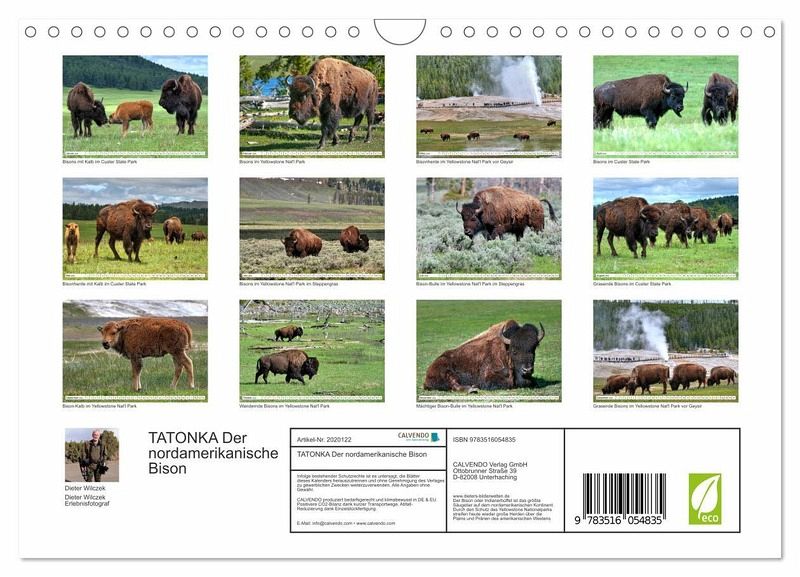 QUALITÄT - Hochwertiger Fotokalender mit 12 wunderschönen Motiven auf lichtbeständigem Bilderdruckpapier, robuste Spiralbindung mit Aufhängebügel.NACHHALTIG - deutliche Abfallreduzierung durch bedarfsgerechte Einzelstückfertigung, umweltfreundliches FSC-zertifiziertes Papier, Produktion in Deutschland, klimabewusste Logistik.PERFEKTES GESCHENK - Kalender für Freunde und Familie, für Kinder und Erwachsene, jung und alt, zu Weihnachten, Geburtstag oder zwischendurch.VIELFALT - Bildkalender in verschiedenen Formaten, z.B. DIN A5, DIN A4, DIN A3 sowie DIN A2. Ob Naturmotiv, Gemälde oder Fotos, ideal für ein persönliches Wohlfühlambiente.Indianerbüffel vor der beeindruckenden Kulisse des Yellowstone Nationalparks von Autor(in): Dieter Wilczek