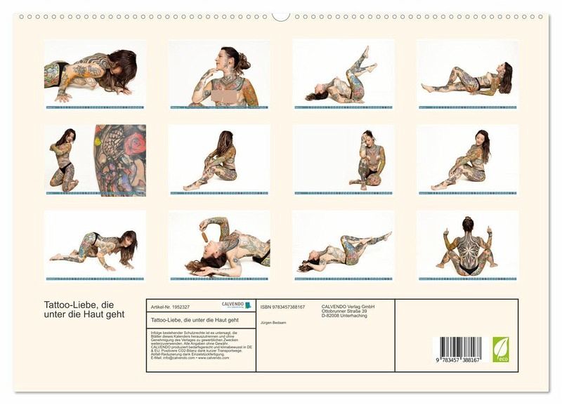 PREMIUM-LINIE - Brillanter Fotokalender mit 12 wunderschönen Motiven, Kunstdruck in Hochglanz in Museumsqualität.QUALITÄT - edle Materialien, stabile Rückwand mit 2 innovativen Einstecktaschen für eine optimale Präsentation an der Wand.NACHHALTIG - deutliche Abfallreduzierung durch bedarfsgerechte Einzelstückfertigung, umweltfreundliches FSC-zertifiziertes Papier, Produktion inDeutschland, klimabewusste Logistik.PERFEKTES GESCHENK - Kalender für Freunde und Familie, für Erwachsene, zu Weihnachten, Geburtstag oder zwischendurch.Verführerische Kunst: Der Kalender für Tattoo-Liebhaber - Farbenfrohe Motive und Sexy Aktbilder von faszinierende Frau von Autor(in): Jürgen Bedaam