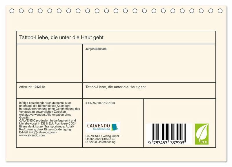 QUALITÄT - Hochwertiger Fotokalender mit 12 wunderschönen Motiven auf lichtbeständigem Bilderdruckpapier, robuste Spiralbindung.NACHHALTIG - deutliche Abfallreduzierung durch bedarfsgerechte Einzelstückfertigung, umweltfreundliches FSC-zertifiziertes Papier, Produktion in Deutschland, klimabewusste Logistik.PERFEKTES GESCHENK - Kalender für Freunde und Familie, für Erwachsene, zu Weihnachten, Geburtstag oder zwischendurch.VIELFALT - Bildkalender in verschiedenen Formaten, z.B. DIN A5, DIN A4, DIN A3 sowie DIN A2. Ob Naturmotiv, Gemälde oder Fotos, ideal für ein persönliches Wohlfühlambiente.Verführerische Kunst: Der Kalender für Tattoo-Liebhaber - Farbenfrohe Motive und Sexy Aktbilder von faszinierende Frau von Autor(in): Jürgen Bedaam