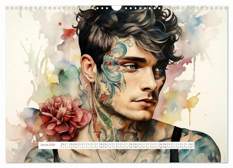 Hier wird, Dank einer KI, die Schönheit und Vielfalt von Tattoos mit der Eleganz und Zartheit von Aquarellmalerei verschmolzen. Lassen Sie sich inspirieren von den farbenfrohen und ausdrucksstarken Motiven und entdecken Sie fantastische Kontraste. Dieser Kalender ist nicht nur ein Hingucker, sondern auch ein Statement für alle, die Tattoos lieben oder einfach neugierig sind.