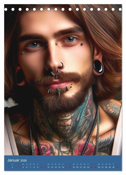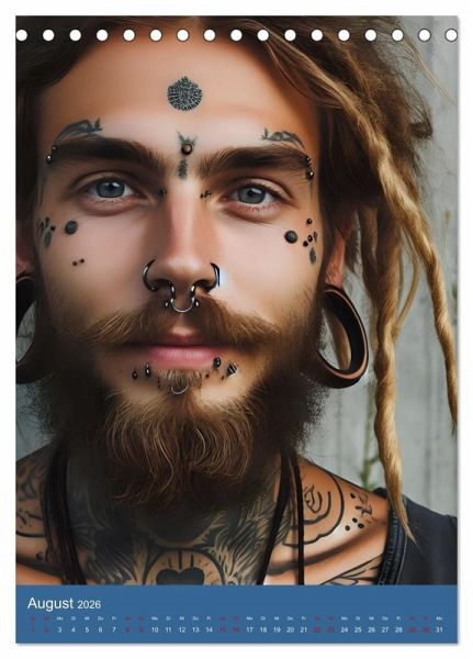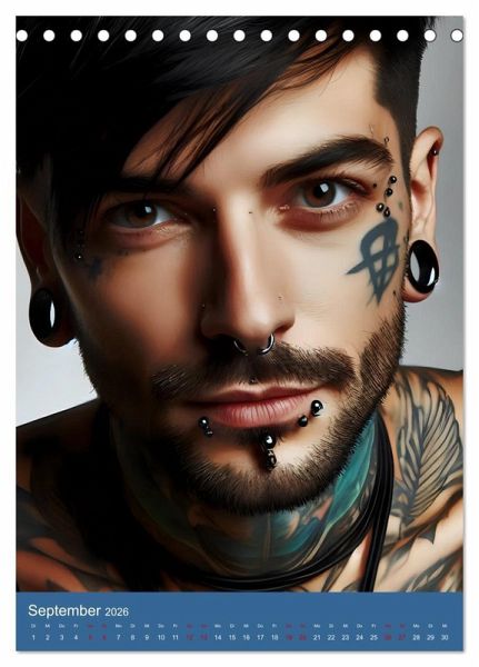 Lass dich von der einzigartigen Kombination aus Körperkunst und modernster KI-Technologie begeistern! Dieser Kalender präsentiert tätowierte und gepiercte Männer in kraftvollen, ausdrucksstarken Bildern, die ihre Individualität und Stärke auf faszinierende Weise widerspiegeln. Jedes Bild ist ein Meisterwerk, das nicht nur die Ästhetik von Tattoos und Piercings einfängt, sondern auch die beeindruckende Kreativität und Präzision hinter der KI-gesteuerten Gestaltung zeigt. Hole dir dieses außergewöhnliche Stück Kunst für dein Zuhause - für alle, die das Besondere lieben.