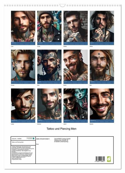 Lass dich von der einzigartigen Kombination aus Körperkunst und modernster KI-Technologie begeistern! Dieser Kalender präsentiert tätowierte und gepiercte Männer in kraftvollen, ausdrucksstarken Bildern, die ihre Individualität und Stärke auf faszinierende Weise widerspiegeln. Jedes Bild ist ein Meisterwerk, das nicht nur die Ästhetik von Tattoos und Piercings einfängt, sondern auch die beeindruckende Kreativität und Präzision hinter der KI-gesteuerten Gestaltung zeigt. Hole dir dieses außergewöhnliche Stück Kunst für dein Zuhause - für alle, die das Besondere lieben.