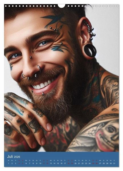 Lass dich von der einzigartigen Kombination aus Körperkunst und modernster KI-Technologie begeistern! Dieser Kalender präsentiert tätowierte und gepiercte Männer in kraftvollen, ausdrucksstarken Bildern, die ihre Individualität und Stärke auf faszinierende Weise widerspiegeln. Jedes Bild ist ein Meisterwerk, das nicht nur die Ästhetik von Tattoos und Piercings einfängt, sondern auch die beeindruckende Kreativität und Präzision hinter der KI-gesteuerten Gestaltung zeigt. Hole dir dieses außergewöhnliche Stück Kunst für dein Zuhause - für alle, die das Besondere lieben.