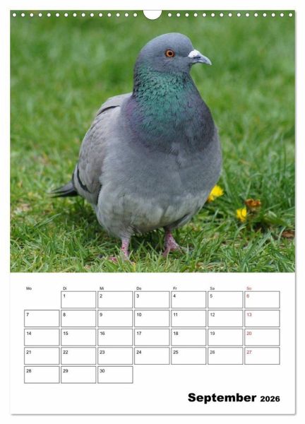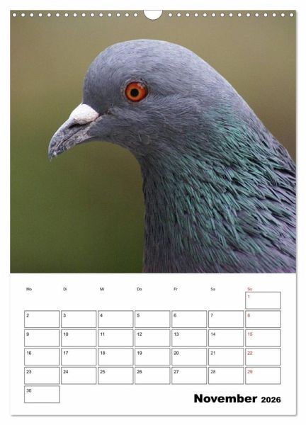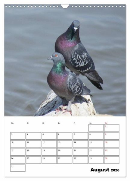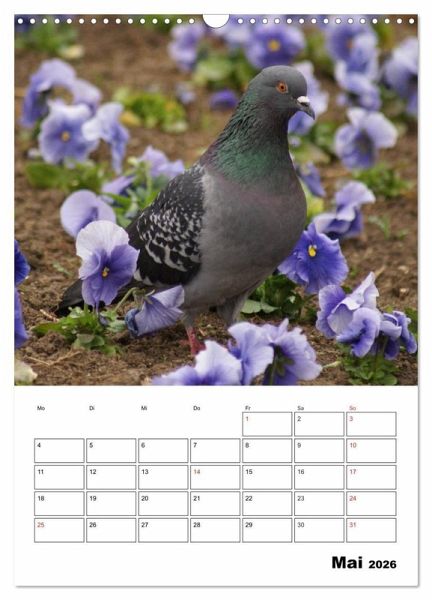 Die weißen Tauben sind ein Symbol des Friedens. Berühmt sind auch die Brieftauben die über kilometerlange Strecken wieder zurückfinden. Tauben sind echte Schönheiten mit einem interessanten Balzverhalten. Dieser Kalender bringt ihnen diese faszinierenden Vögel näher und hilft Ihnen dabei an wichtige Termine zu denken.