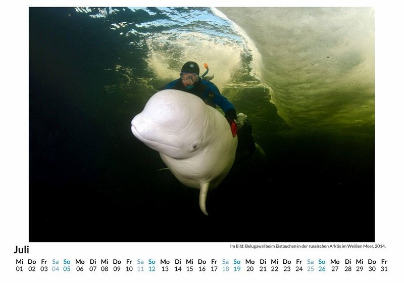 Tauchen Sie ein in die faszinierende Welt der Beluga Wale! Unser hochwertiger Wandkalender "Tauchen mit Beluga Walen" entführt Sie Monat für Monat in die magische Unterwasserwelt dieser sanften Riesen. Jedes der 12 liebevoll ausgewählten Motive fängt die Schönheit und Anmut der Belugas in atemberaubenden Aufnahmen ein. Gedruckt auf lichtbeständigem, FSC-zertifiziertem Bilderdruckpapier, ist dieser Kalender nicht nur ein optisches Highlight, sondern auch ein nachhaltiges Statement. Perfekt für Naturliebhaber und Abenteurer - holen Sie sich die Faszination der Arktis direkt in Ihr Zuhause! Ideal auch als Geschenk. Hochwertig Erleben Sie ein Jahr voller Eleganz mit unserem Premium-Fotokalender. Jedes der 12 Motive ist auf hochwertigem, lichtbeständigem Bilderdruckpapier gedruckt, um die Lebendigkeit jedes Bildes zu bewahren. Die robuste Spiralbindung gewährleistet Langlebigkeit und einfache Handhabung. Nachhaltig Unser Engagement für die Umwelt spiegelt sich in jedem Exemplar wider. Durch die Produktion auf Abruf reduzieren wir signifikant unseren Abfall. Wir verwenden ausschließlich umweltfreundliches, FSC-zertifiziertes Papier. Stolz gefertigt in Deutschland, achten wir bei unserer Logistik auf Klimaschutz, um unseren ökologischen Fußabdruck zu minimieren. Das ideale Geschenk Dieser Kalender ist das perfekte Präsent für jeden Anlass - ob Weihnachten, Geburtstage oder einfach als liebevolle Aufmerksamkeit zwischendurch. Geeignet für Freunde, Familie, Kinder und Erwachsene gleichermaßen, bereichert er jedes Zuhause mit seiner Vielfalt und Schönheit, unabhängig vom Alter der Beschenkten.