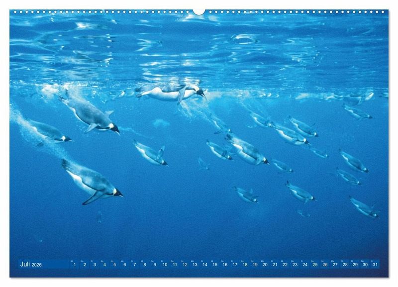 Juli: Kaiserpinguine (Aptenodytes forsteri) sind die Meistertaucher unter den Vögeln und können eine Tiefe von 500 m erreichen, Antarktis