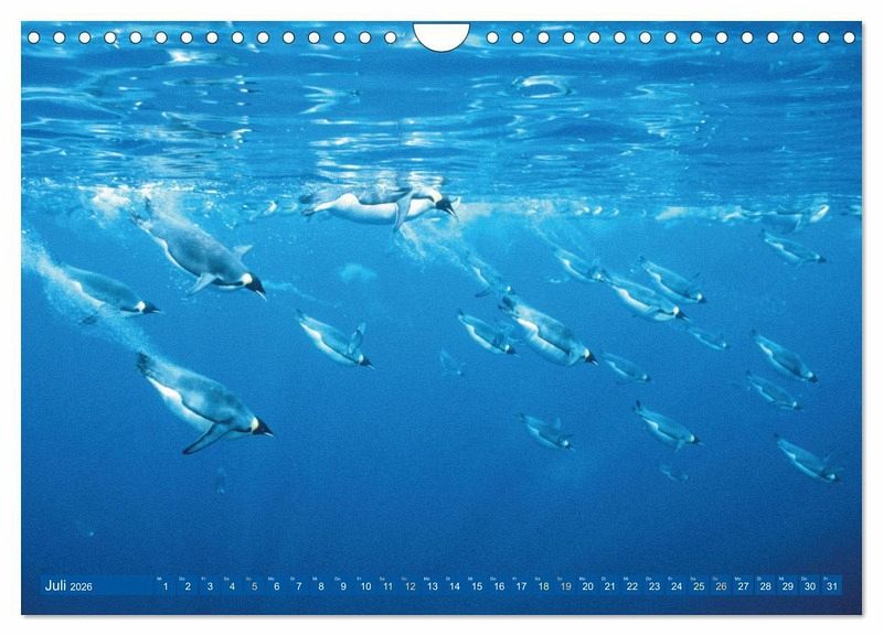 Juli: Kaiserpinguine (Aptenodytes forsteri) sind die Meistertaucher unter den Vögeln und können eine Tiefe von 500 m erreichen, Antarktis