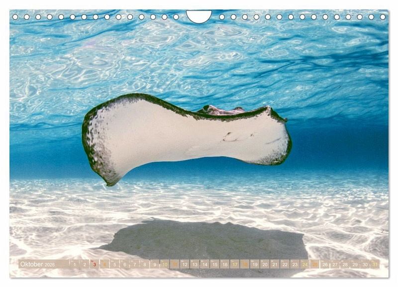 Oktober: Südlicher Stechrochen (Hypanus americanus), lebt küstennah über sandigem Grund und Seegras, Cayman-Inseln