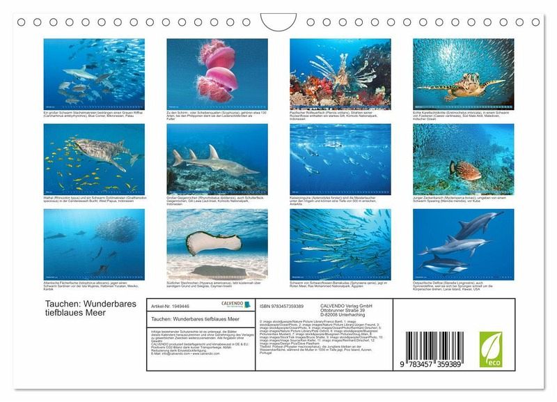 QUALITÄT - Hochwertiger Fotokalender mit 12 wunderschönen Motiven auf lichtbeständigem Bilderdruckpapier, robuste Spiralbindung mit Aufhängebügel.NACHHALTIG - deutliche Abfallreduzierung durch bedarfsgerechte Einzelstückfertigung, umweltfreundliches FSC-zertifiziertes Papier, Produktion in Deutschland, klimabewusste Logistik.PERFEKTES GESCHENK - Kalender für Freunde und Familie, für Kinder und Erwachsene, jung und alt, zu Weihnachten, Geburtstag oder zwischendurch.VIELFALT - Bildkalender in verschiedenen Formaten, z.B. DIN A5, DIN A4, DIN A3 sowie DIN A2. Ob Naturmotiv, Gemälde oder Fotos, ideal für ein persönliches Wohlfühlambiente.Großartige Unterwasseraufnahmen in der blauen Tiefe: Faszination Tauchen von Autor(in): CALVENDO Verlag