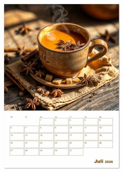Entdecken Sie die faszinierende Welt des Tees mit unserem KI-Kalender Tee-Reise - Entdeckungen aus aller Welt. Lassen Sie sich Monat für Monat von atemberaubenden Bildern und inspirierenden Einblicken in die vielfältigen Teekulturen rund um den Globus verzaubern. Ob es sich um kräftigen Chai oder eleganten Matcha handelt, jeder Monat lädt Sie ein, die feinsten Teerituale zu erleben und die Harmonie von Geschmack und Genuss zu genießen. Perfekt für Teeliebhaber und all jene, die die Ruhe und Schönheit dieser jahrhundertealten Tradition in ihr Zuhause bringen möchten. Tauchen Sie ein in diese genussvolle Reise und lassen Sie sich inspirieren.