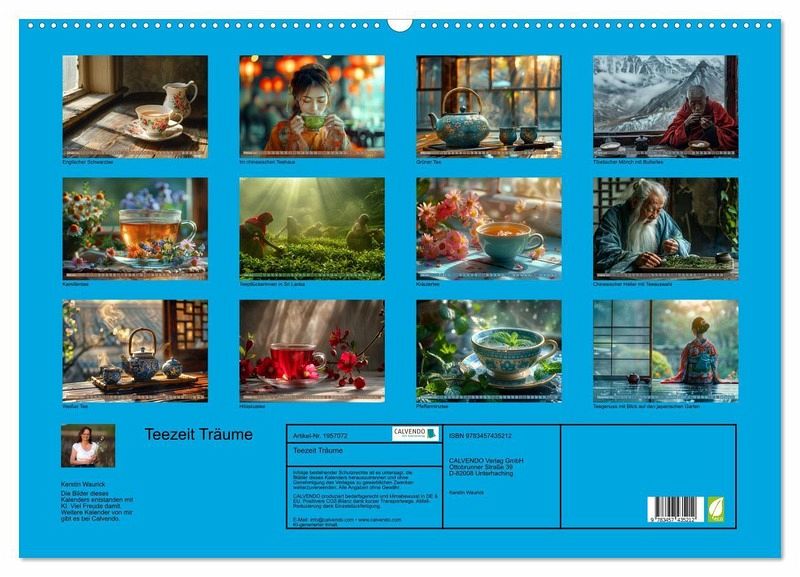 Tauchen Sie ein in die 'Teezeit Träume'! Dieser einzigartige Kalender nimmt Sie mit auf eine faszinierende Reise durch die Welt des Tees, kreiert mit Hilfe künstlicher Intelligenz. Jeden Monat erleben Sie entspannte Augenblicke mit Teetassen in den Händen von Menschen aus aller Welt. Von aromatischem Grüntee bis hin zu beruhigendem Kräutertee - entdecken Sie die Vielfalt der Teesorten. Lassen Sie sich von den 'Teezeit Träumen' verzaubern und genießen Sie eine Tasse Tee für die Seele, jeden Monat aufs Neue.