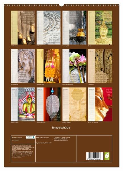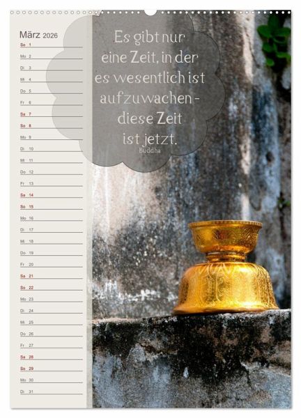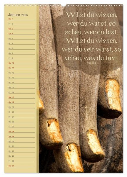 Dies ist ein Geburtstags- und Zitatekalender mit buddhistischen Weisheiten. In diesem Kalender finden Sie zahlreiche wunderschöne Fotografien aus verschiedensten Tempeln, von Buddha-Statuen und verschiedenen Tempel-Accessoires. Der Buddhismus schenkt uns wundervolle Weisheiten und Gedanken für ein erfülltes, glückliches und gesundes Leben.