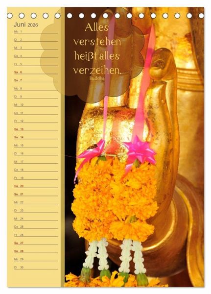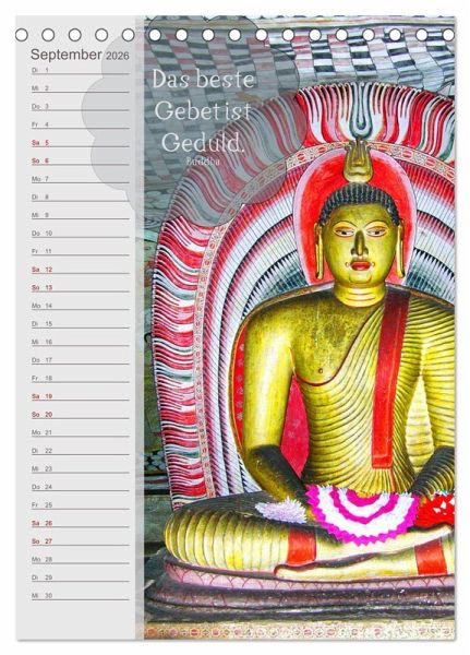 Dies ist ein Geburtstags- und Zitatekalender mit buddhistischen Weisheiten. In diesem Kalender finden Sie zahlreiche wunderschöne Fotografien aus verschiedensten Tempeln, von Buddha-Statuen und verschiedenen Tempel-Accessoires. Der Buddhismus schenkt uns wundervolle Weisheiten und Gedanken für ein erfülltes, glückliches und gesundes Leben.