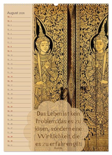 Dies ist ein Geburtstags- und Zitatekalender mit buddhistischen Weisheiten. In diesem Kalender finden Sie zahlreiche wunderschöne Fotografien aus verschiedensten Tempeln, von Buddha-Statuen und verschiedenen Tempel-Accessoires. Der Buddhismus schenkt uns wundervolle Weisheiten und Gedanken für ein erfülltes, glückliches und gesundes Leben.