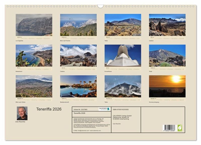 QUALITÄT - Hochwertiger Fotokalender mit 12 wunderschönen Motiven auf lichtbeständigem Bilderdruckpapier, robuste Spiralbindung mit Aufhängebügel.NACHHALTIG - deutliche Abfallreduzierung durch bedarfsgerechte Einzelstückfertigung, umweltfreundliches FSC-zertifiziertes Papier, Produktion in Deutschland, klimabewusste Logistik.PERFEKTES GESCHENK - Kalender für Freunde und Familie, für Kinder und Erwachsene, jung und alt, zu Weihnachten, Geburtstag oder zwischendurch.VIELFALT - Bildkalender in verschiedenen Formaten, z.B. DIN A5, DIN A4, DIN A3 sowie DIN A2. Ob Naturmotiv, Gemälde oder Fotos, ideal für ein persönliches Wohlfühlambiente.Teneriffa Nr.1 von Autor(in): Uwe Reschke