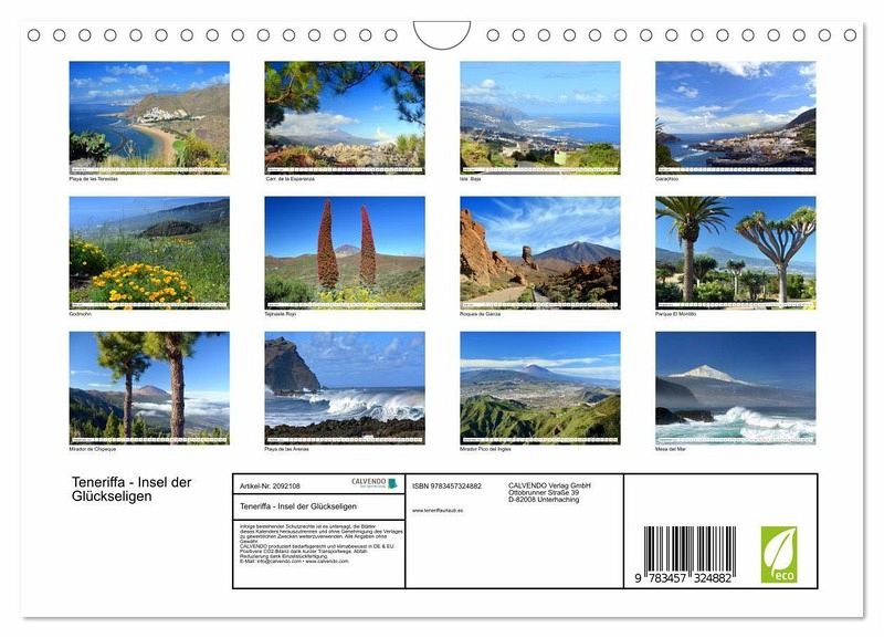 QUALITÄT - Hochwertiger Fotokalender mit 12 wunderschönen Motiven auf lichtbeständigem Bilderdruckpapier, robuste Spiralbindung mit Aufhängebügel.NACHHALTIG - deutliche Abfallreduzierung durch bedarfsgerechte Einzelstückfertigung, umweltfreundliches FSC-zertifiziertes Papier, Produktion in Deutschland, klimabewusste Logistik.PERFEKTES GESCHENK - Kalender für Freunde und Familie, für Kinder und Erwachsene, jung und alt, zu Weihnachten, Geburtstag oder zwischendurch.VIELFALT - Bildkalender in verschiedenen Formaten, z.B. DIN A5, DIN A4, DIN A3 sowie DIN A2. Ob Naturmotiv, Gemälde oder Fotos, ideal für ein persönliches Wohlfühlambiente.Traumhafte Bilder einer faszinierenden Insel von Autor(in): www.teneriffaurlaub.es