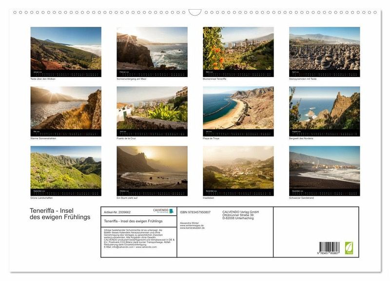 QUALITÄT - Hochwertiger Fotokalender mit 12 wunderschönen Motiven auf lichtbeständigem Bilderdruckpapier, robuste Spiralbindung mit Aufhängebügel.NACHHALTIG - deutliche Abfallreduzierung durch bedarfsgerechte Einzelstückfertigung, umweltfreundliches FSC-zertifiziertes Papier, Produktion in Deutschland, klimabewusste Logistik.PERFEKTES GESCHENK - Kalender für Freunde und Familie, für Kinder und Erwachsene, jung und alt, zu Weihnachten, Geburtstag oder zwischendurch.VIELFALT - Bildkalender in verschiedenen Formaten, z.B. DIN A5, DIN A4, DIN A3 sowie DIN A2. Ob Naturmotiv, Gemälde oder Fotos, ideal für ein persönliches Wohlfühlambiente.Farbenfrohe Landschaften bei mildem Klima - das ist Teneriffa! von Autor(in): Winterimages Photography