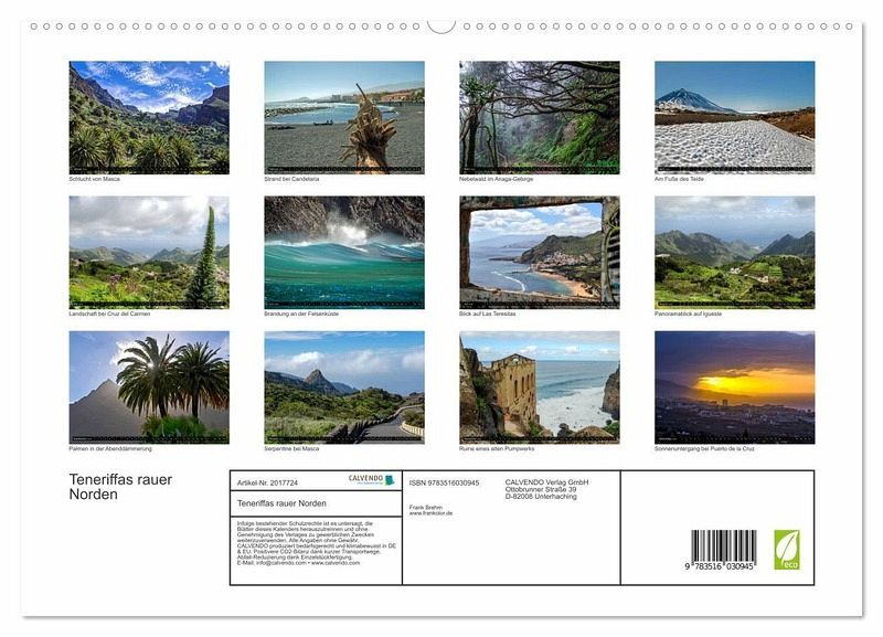 PREMIUM-LINIE - Brillanter Fotokalender mit 12 wunderschönen Motiven, Kunstdruck in Hochglanz in Museumsqualität.QUALITÄT - edle Materialien, stabile Rückwand mit 2 innovativen Einstecktaschen für eine optimale Präsentation an der Wand.NACHHALTIG - deutliche Abfallreduzierung durch bedarfsgerechte Einzelstückfertigung, umweltfreundliches FSC-zertifiziertes Papier, Produktion in Deutschland, klimabewusste Logistik.PERFEKTES GESCHENK - Kalender für Freunde und Familie, für Kinder und Erwachsene, jung und alt, zu Weihnachten, Geburtstag oder zwischendurch.Landschaftsaufnahmen aus Teneriffas Norden zu Frühjahrsbeginn von Autor(in): Frank Brehm