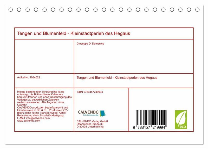 QUALITÄT - Hochwertiger Fotokalender mit 12 wunderschönen Motiven auf lichtbeständigem Bilderdruckpapier, robuste Spiralbindung.NACHHALTIG - deutliche Abfallreduzierung durch bedarfsgerechte Einzelstückfertigung, umweltfreundliches FSC-zertifiziertes Papier, Produktion in Deutschland, klimabewusste Logistik.PERFEKTES GESCHENK - Kalender für Freunde und Familie, für Kinder und Erwachsene, jung und alt, zu Weihnachten, Geburtstag oder zwischendurch.VIELFALT - Bildkalender in verschiedenen Formaten, z.B. DIN A5, DIN A4, DIN A3 sowie DIN A2. Ob Naturmotiv, Gemälde oder Fotos, ideal für ein persönliches Wohlfühlambiente.Die besonders reizvolle Lage machen Tengen und Blumenfeld zu den malerischten Orte des Hegaus von Autor(in): Giuseppe Di Domenico