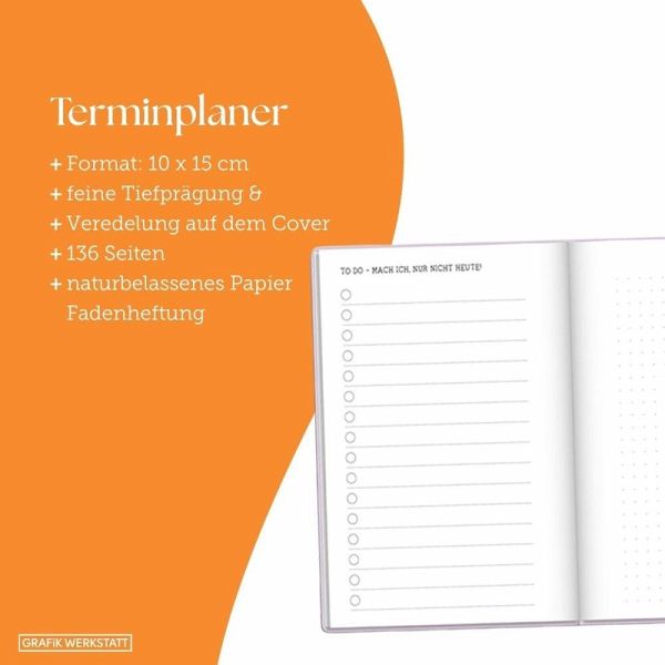 - Kleiner Terminplaner mit hochwertiger Fadenheftung, Hardcover-Umschlag und Satin-Lesezeichen (Format: 10 x 15,5 cm)