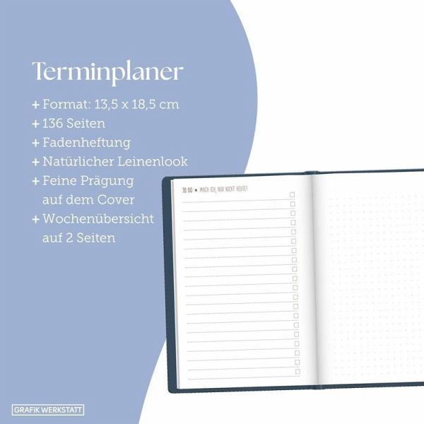- Kleiner Terminplaner mit hochwertiger Fadenheftung, Hardcover-Umschlag und Satin-Lesezeichen (Format: 13,5 x 18,5 cm)