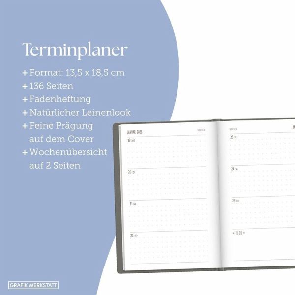 Ein Terminplaner für 2026 im natürlichen Leinen-Look