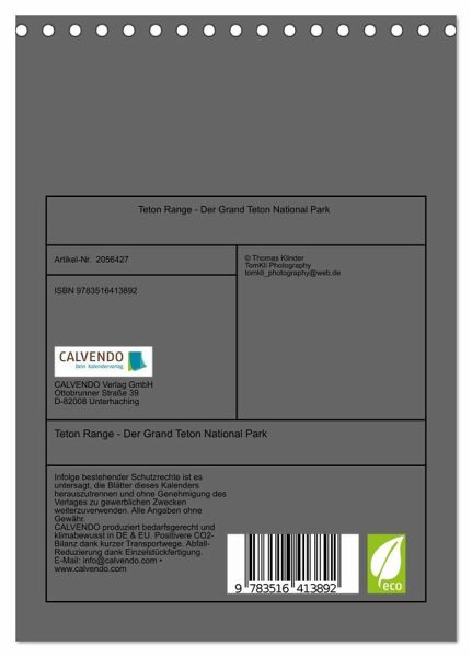 QUALITÄT - Hochwertiger Fotokalender mit 12 wunderschönen Motiven auf lichtbeständigem Bilderdruckpapier, robuste Spiralbindung.NACHHALTIG - deutliche Abfallreduzierung durch bedarfsgerechte Einzelstückfertigung, umweltfreundliches FSC-zertifiziertes Papier, Produktion in Deutschland, klimabewusste Logistik.PERFEKTES GESCHENK - Kalender für Freunde und Familie, für Kinder und Erwachsene, jung und alt, zu Weihnachten, Geburtstag oder zwischendurch.VIELFALT - Bildkalender in verschiedenen Formaten, z.B. DIN A5, DIN A4, DIN A3 sowie DIN A2. Ob Naturmotiv, Gemälde oder Fotos, ideal für ein persönliches Wohlfühlambiente.Die Grand Teton Range bildet das Herzstück des gleichnamigen National Parks. von Autor(in): TomKli