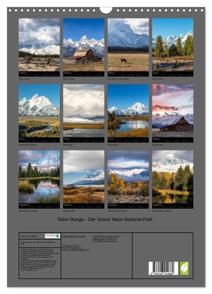 QUALITÄT - Hochwertiger Fotokalender mit 12 wunderschönen Motiven auf lichtbeständigem Bilderdruckpapier, robuste Spiralbindung mit Aufhängebügel.NACHHALTIG - deutliche Abfallreduzierung durch bedarfsgerechte Einzelstückfertigung, umweltfreundliches FSC-zertifiziertes Papier, Produktion in Deutschland, klimabewusste Logistik.PERFEKTES GESCHENK - Kalender für Freunde und Familie, für Kinder und Erwachsene, jung und alt, zu Weihnachten, Geburtstag oder zwischendurch.VIELFALT - Bildkalender in verschiedenen Formaten, z.B. DIN A5, DIN A4, DIN A3 sowie DIN A2. Ob Naturmotiv, Gemälde oder Fotos, ideal für ein persönliches Wohlfühlambiente.Die Grand Teton Range bildet das Herzstück des gleichnamigen National Parks. von Autor(in): TomKli