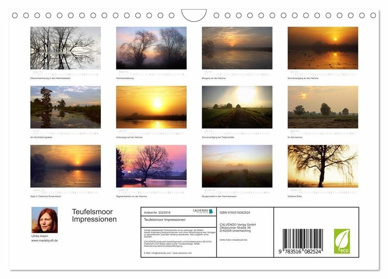 QUALITÄT - Hochwertiger Fotokalender mit 12 wunderschönen Motiven auf lichtbeständigem Bilderdruckpapier, robuste Spiralbindung mit Aufhängebügel.NACHHALTIG - deutliche Abfallreduzierung durch bedarfsgerechte Einzelstückfertigung, umweltfreundliches FSC-zertifiziertes Papier, Produktion in Deutschland, klimabewusste Logistik.PERFEKTES GESCHENK - Kalender für Freunde und Familie, für Kinder und Erwachsene, jung und alt, zu Weihnachten, Geburtstag oder zwischendurch.VIELFALT - Bildkalender in verschiedenen Formaten, z.B. DIN A5, DIN A4, DIN A3 sowie DIN A2. Ob Naturmotiv, Gemälde oder Fotos, ideal für ein persönliches Wohlfühlambiente.Traumhafte Fotos des Teufelsmoors von Autor(in): Fotokunst Ulrike Adam