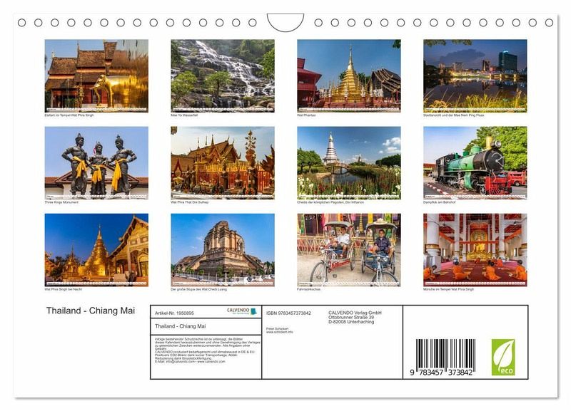 Eine lebendige Altstadt, faszinierende buddhistische Tempelanlagen und eine Vielzahl spannende Ausflüge in die Landschaft und die Natur machen Chiang Mai zu einem der beliebtesten Ziel für alle Thailand-Reisenden. Ein sehenswerter Kalender vom Reisefotografen Peter Schickert.