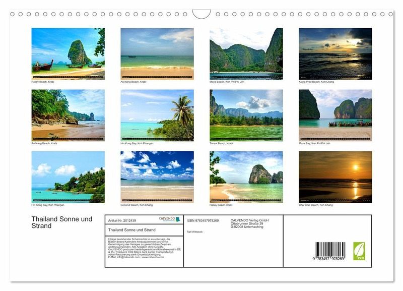 Endecken Sie mit diesem Kalender faszinierende Küstenlandschaften, paradiesische Traumstrände und wunderschöne Sonnenuntergänge. Dieses reizvolle Land wird auch Sie nicht mehr los lassen und vielleicht gehören auch Sie bald zu den vielen Menschen die immer wieder kommen. Amazing Thailand - The Land Of Smile!