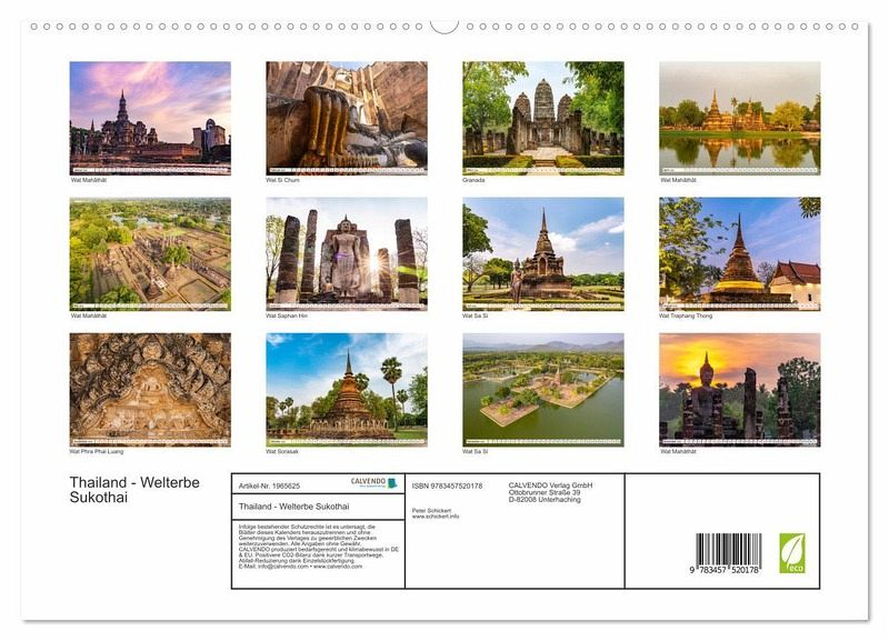 PREMIUM-LINIE - Brillanter Fotokalender mit 12 wunderschönen Motiven, Kunstdruck in Hochglanz in Museumsqualität.QUALITÄT - edle Materialien, stabile Rückwand mit 2 innovativen Einstecktaschen für eine optimale Präsentation an der Wand.NACHHALTIG - deutliche Abfallreduzierung durch bedarfsgerechte Einzelstückfertigung, umweltfreundliches FSC-zertifiziertes Papier, Produktion in Deutschland, klimabewusste Logistik.PERFEKTES GESCHENK - Kalender für Freunde und Familie, für Kinder und Erwachsene, jung und alt, zu Weihnachten, Geburtstag oder zwischendurch.Thailands königliches Welterbe Sukothai in einem wunderbaren Kalender vom Reisefotografen Peter Schickert. von Autor(in): Peter Schickert