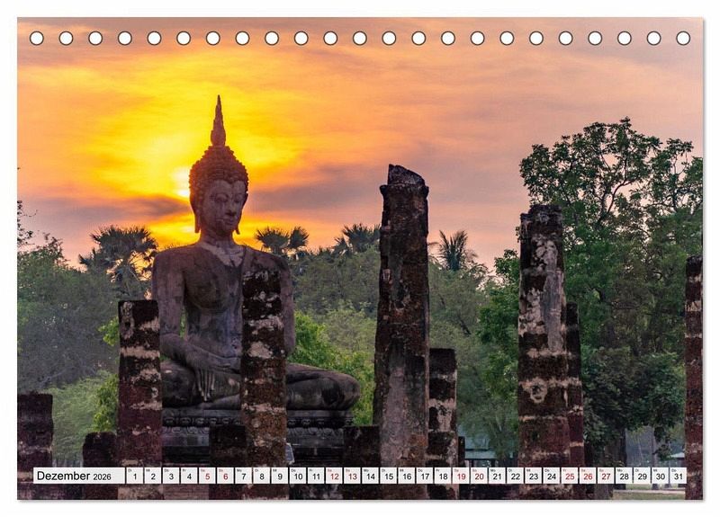 Dieser faszinierende Kalender nimmt Sie mit auf eine Reise in die Hauptstadt des alten Siam - Sukothai. Die Ruinen der spektakulären königlichen Tempelanlagen sind ein Höhepunkt jeder Thailandreise und gehören zum UNESCO Welterbe.