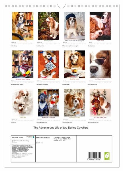 QUALITY - High-quality photo calendar with 12 beautiful images on light-resistant paper, robust spiral binding with hanger.SUSTAINABLE - Significant waste reduction due to print-on-demand production, environmentally friendly FSC-certified paper, produced in the UK, climate-conscious logistical processes.PERFECT GIFT - calendars for friends and family, for children, all ages and all occasions, from Christmas to birthdays and everything in between.LOTS OF CHOICE - Wall calendars in different sizes (DIN A4 and DIN A3), for any topic and personal taste, featuring photography, painting and illustrations.Two charming Cavaliers bring joy to dog lovers daily, author: Eva Feix