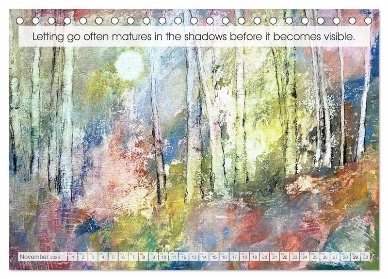 How does a picture change when the person painting it lets go. And how does a person change when they do the same. The Art of Letting Go in Colour is a poetic companion for the year, featuring hand-painted pictures and thoughtful quotes. The pictures are by Michaela Spreider, an art therapist and artist who knows how difficult, yet healing, it is to let go in the creative process. Between representationalism and abstraction, her works invite us to reflect on our own phases of change. Quiet, open, honest. A calendar for people who are moved by art and who are not deterred by change, but want to be transformed by it.