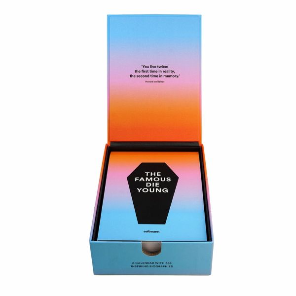 From Al Capone to Frank Zappa. The Famous Die Young.365 Legenden und ihre zu kurzen Lebensgeschichten.Sie sind Pioniere ihres Fachs, wahre Genies, mutige Erfinder, gefeierte Stars, gefallene Helden, tapfere Kämpfer, verarmte Denker, außergewöhnliche Sportskanonen und musikalische Ausnahmetalente.Und sie alle haben eines gemeinsam: Sie sterben viel zu jung, oft auf spektakuläre Art und Weise. 365 Todestage, 365 spannende Kurzbiografien. Der inspirierende Tageskalender wird von Künstlern aus aller Welt illustriert. Ein Muss für jeden, der auf der Suche nach der täglichen Portion Motivation ist.